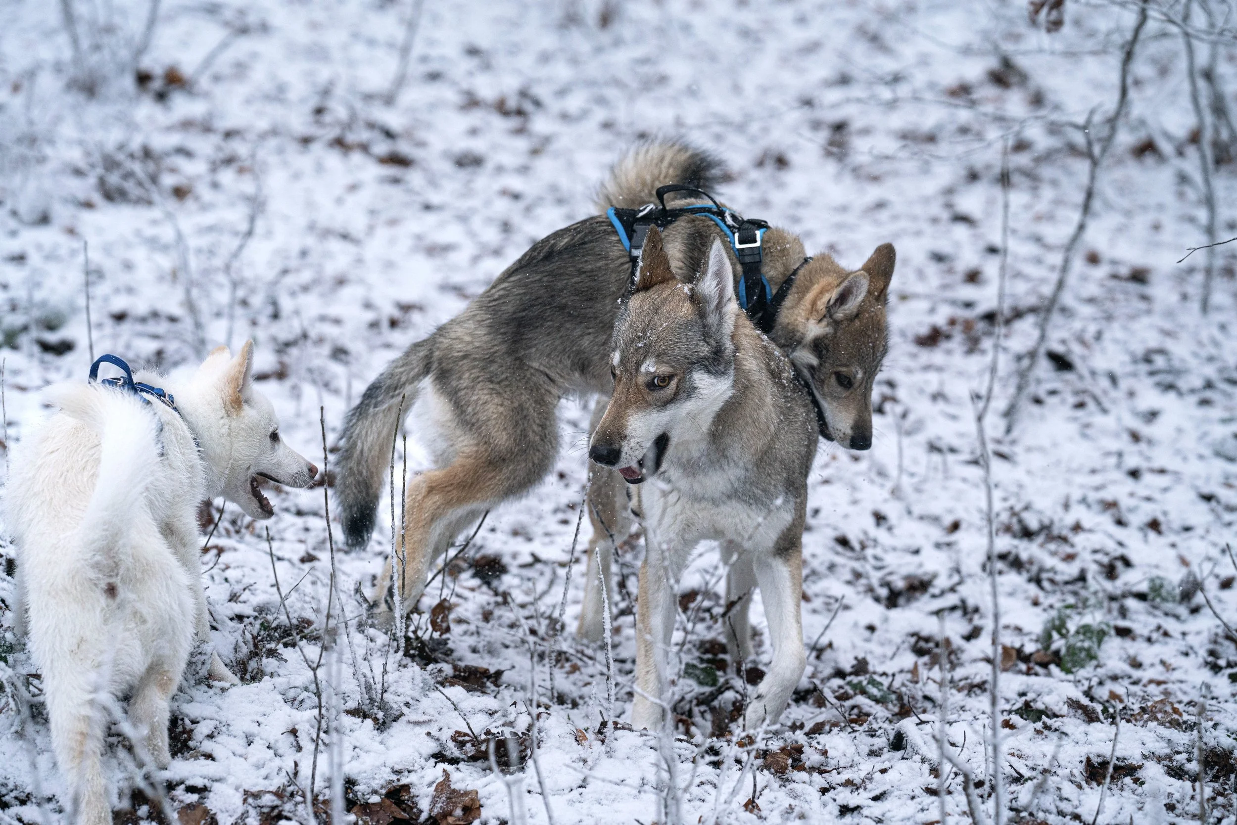 Gib deinem Welpen die Möglichkeit, von erfahrenen, ruhigen Wolfunden zu lernen und sichere soziale Fähigkeiten zu entwickeln.