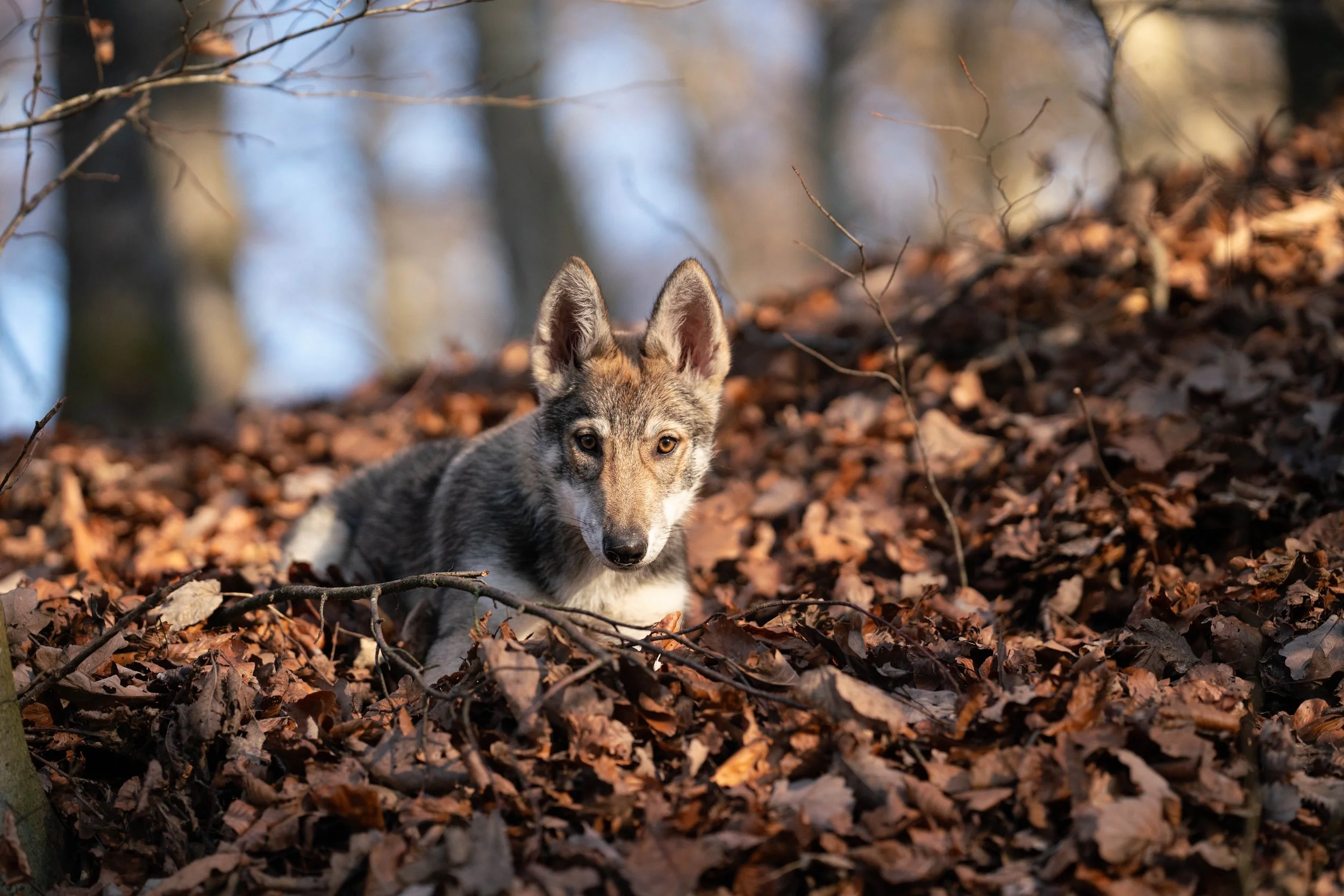 Meine Wolfhunde übernehmen eine stabile Vorbildrolle: Sie geben Orientierung, vermitteln Sicherheit und zeigen Deinem Welpen, wie soziales Miteinander ohne Stress oder Überforderung funktioniert. So entsteht eine gesunde Sozialisierung, die Selbstvertrauen, Gelassenheit und Sozialkompetenz fördert.